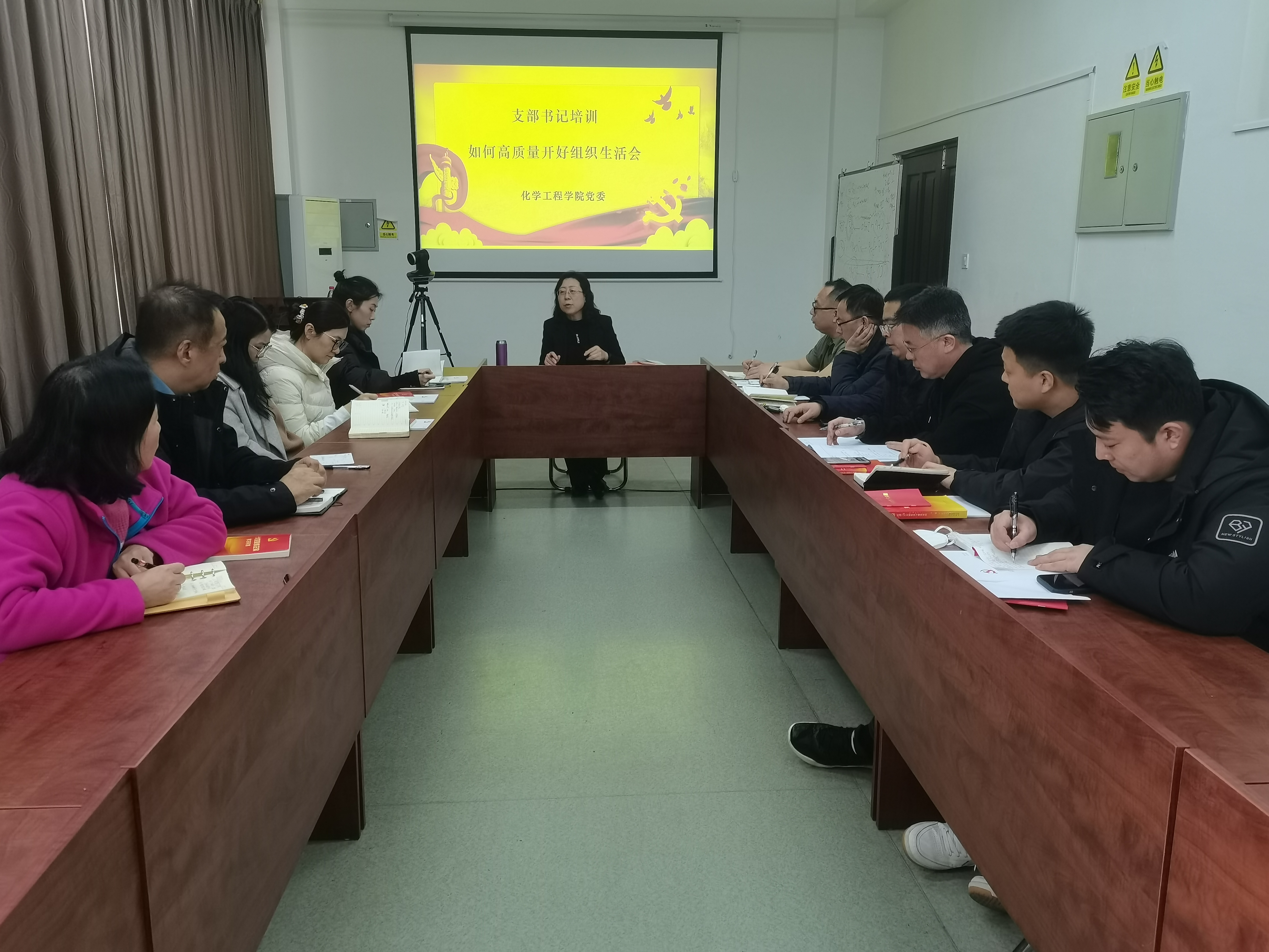 接下来战君以“如何高质量开好组织生活会”为题给全体支部书记做培训,围绕会前准备、会议程序、会议记录、注意事项和具体要求,以及党支部和党员如何对照查摆问题等几个方面进行讲授。战君强调,党支部书记要高度重视,切实履行第一责任人的职责,带领党员深入学习领会党的二十大精神,认真贯彻落实2022年度组织生活会总体要求,联系实际查摆问题,切实开展谈心谈话,严肃开展批评和自我批评,客观公正做好党员民主评议,认真抓好整改落实。要切实发挥组织生活会教育、管理、监督党员作用,并把会议成效转化为全体党员努力做好本职工作、奋力推动学院各项事业发展的实际行动。